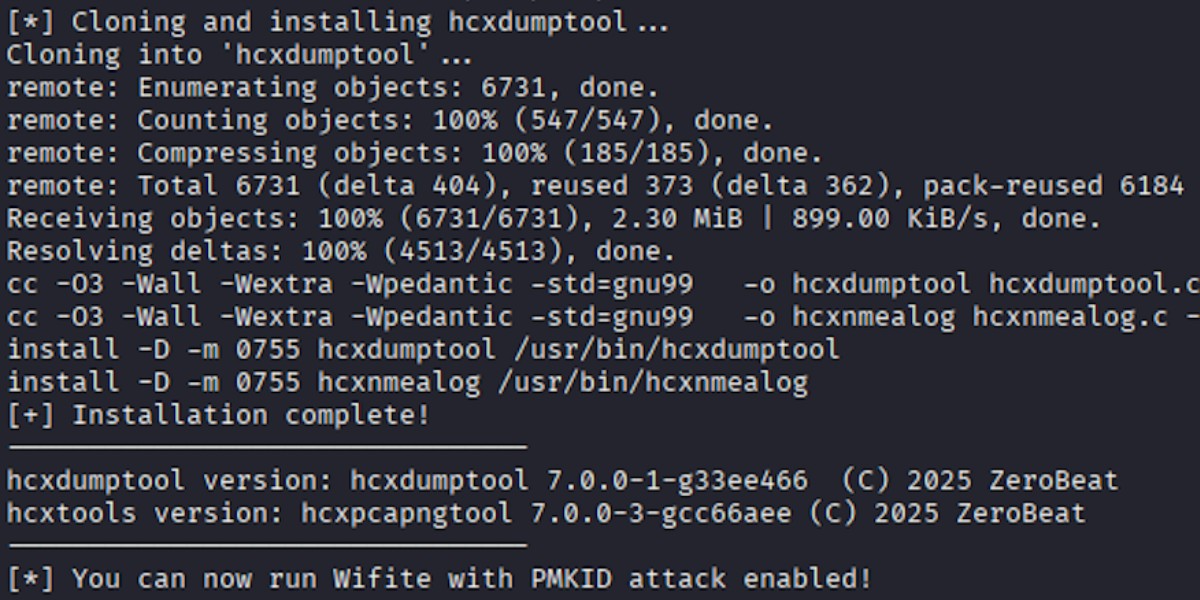 Once both tools are installed, Wifite will automatically detect them and enable the PMKID attack option.