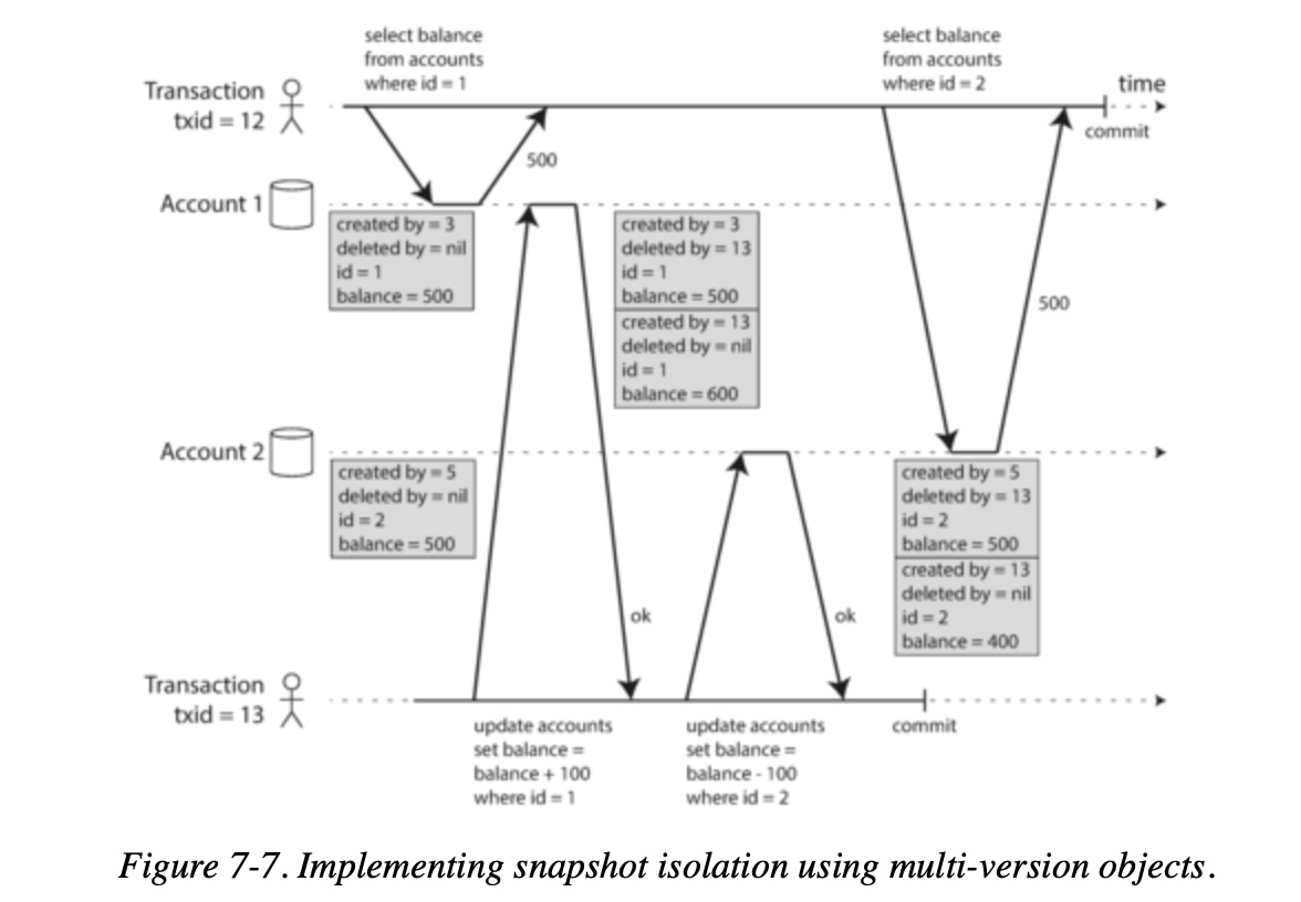 - The database must potentially keep several different committed versions of an object, because various in-progress transactions may need to see the state of the database at different points in time.